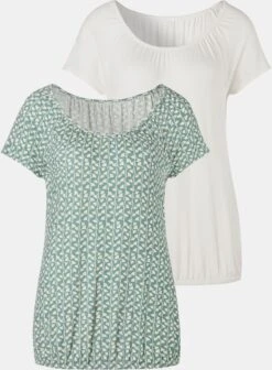 Vivance T-Shirt mit kurzen Raglanärmeln. Leicht geraffter Ausschnitt für ein schönes Dekolleté. Gummizug am Bund für eine lässige Passform. Aus elastischer Qualität mit nachhaltiger Viskose.