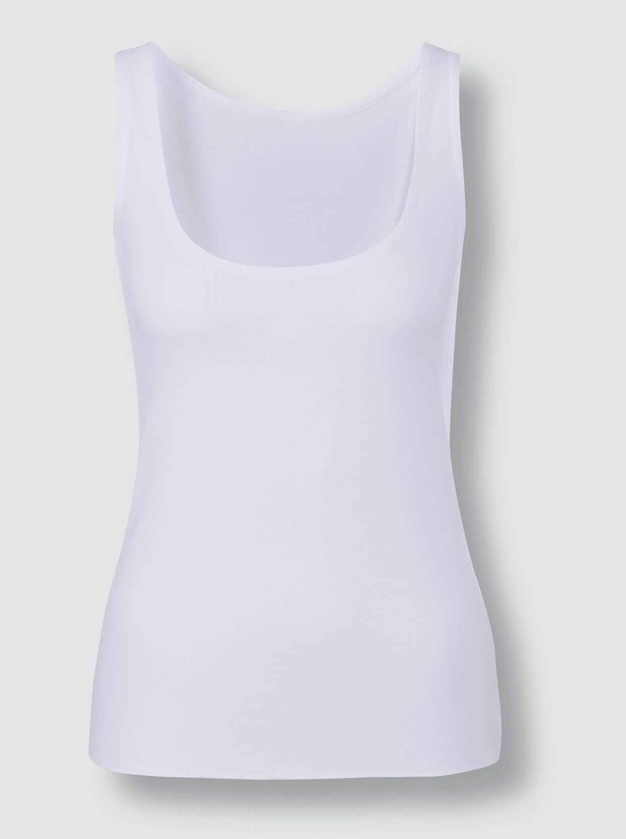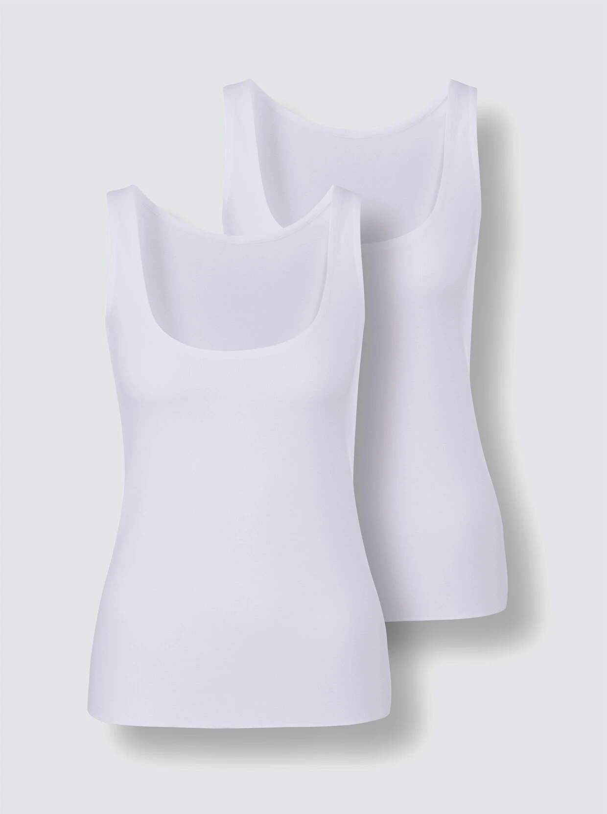 Zweimal schön: Achseltop im Doppelpack von wäschepur mit verlängertem Rückenteil – so rutscht es nicht aus dem Hosenbund. Mit paspeliertem Rundhals-Ausschnitt und flachen Abschlüssen. Feinripp-Qualität.