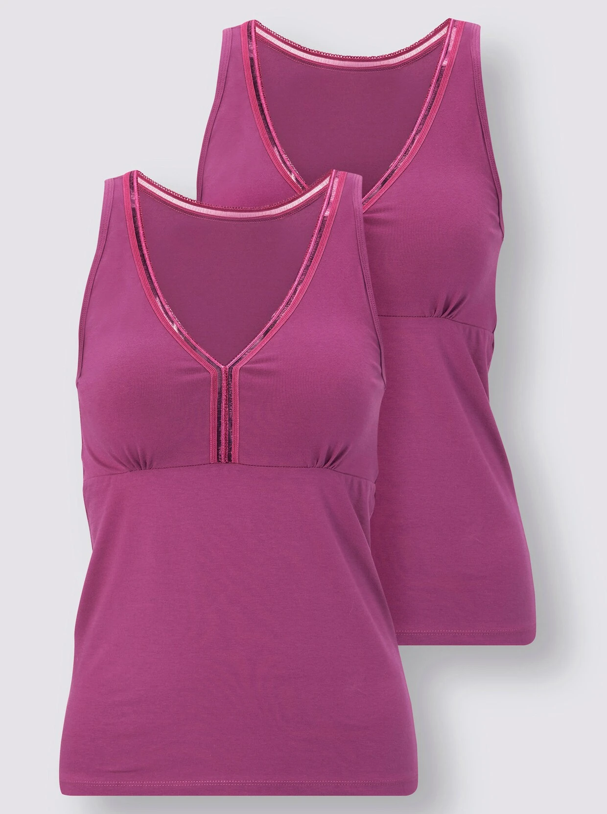 In der Doppelpackung von wäschepur: BH-Hemd mit elastischem Zierband am Ausschnitt. Unterstützt die Initiative Cotton made in Africa.
