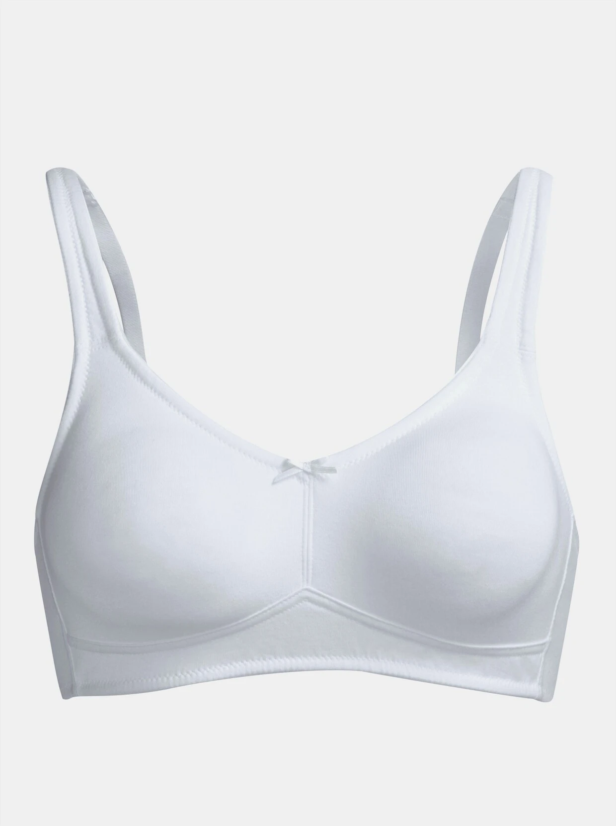 Wohlfühlen im Alltag: BH ohne Bügel von wäschepur mit hohem Baumwollanteil und doppelt gemoldeten Cups. Die Träger sind im Rücken verstellbar.