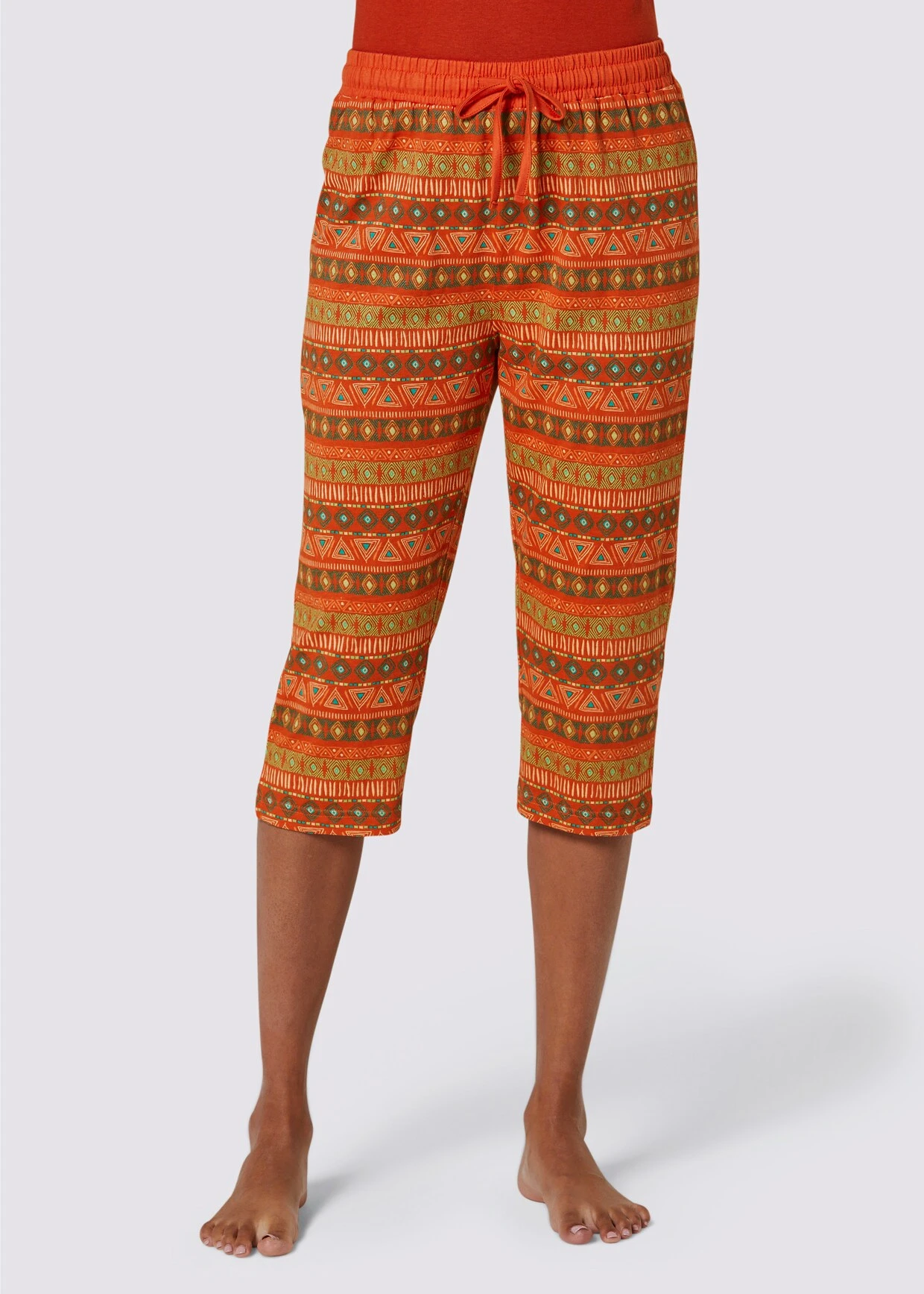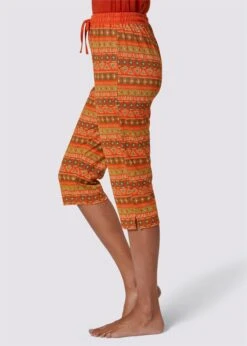 Wäschepur Capri-Hose In Rostrot-smaragd-bedruckt