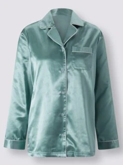 Bei diesem Pyjama aus Satin verwöhnt die weich angeraute Baumwolle innen Ihre Haut und das Polyester außen verleiht ihm edlen Glanz! Mit paspeliertem Reverskragen, durchgehender Knopfleiste und Brusttasche.