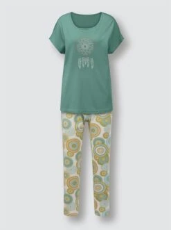 Wäschepur Schlafanzug In Ecru-salbei-bedruckt