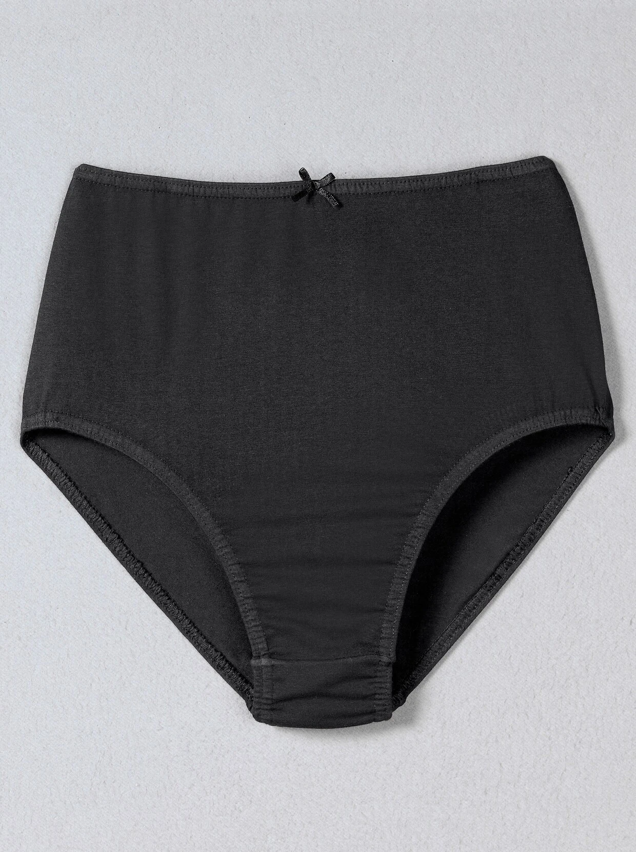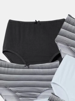 Günstiger 6er-Pack: Taillenslip von wäschepur mit süßem Zierschleifchen am Bund mit eingenähtem Gummi. Hohe Leibhöhe. Elastische Beinabschlüsse. Doppelzwickel. Single-Jersey.