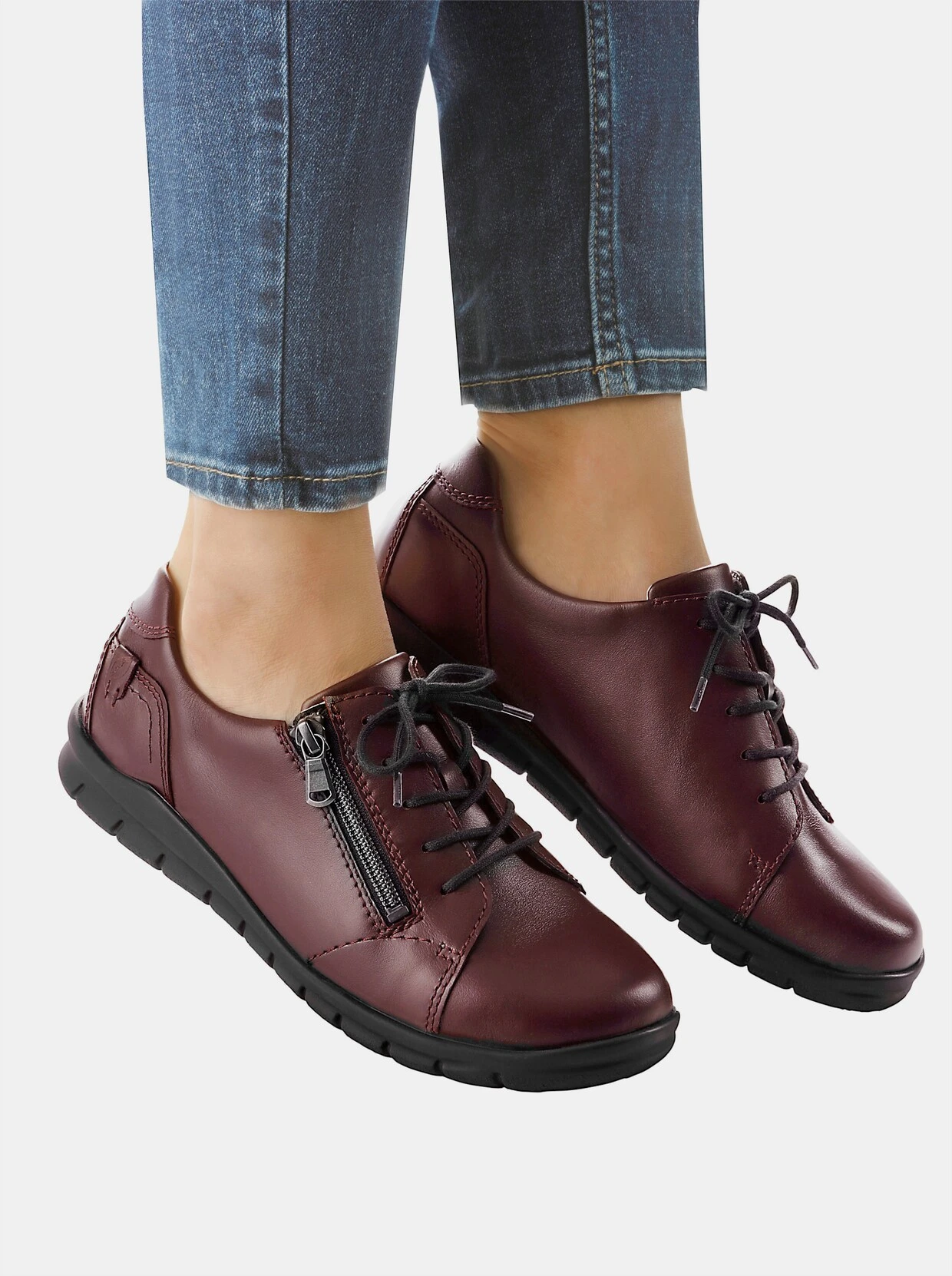 Natürlich geformt: Der innovative Schnürschuh von Waldläufer schenkt Ihnen herrlich viel Zehenfreiheit und dadurch maximalen Komfort. Farbe Marine und Braun aus Nubukleder, Bordeaux aus Glattleder. Innen aus Leder und Textil. Mit seitlichem Reißverschluss. Wechselfußbett mit Pelotte. Super leichte, sehr flexible und rutschhemmende PU-Laufsohle mit ca. 25 mm Absatz. Weite H.