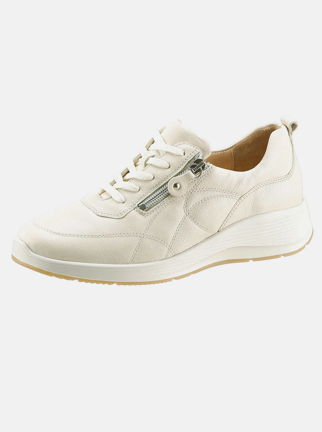 Hochwertiger Schnürschuh in Marken-Qualität von Waldläufer. Obermaterial: Leder, mit doppeltem Reißverschluss. Innenausstattung: Leder. Komfortables Wechselfußbett. Rutschhemmende PU-Laufsohle mit ca. 40 mm Absatz. Weite K.