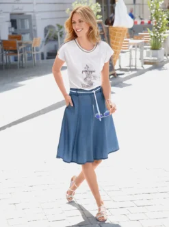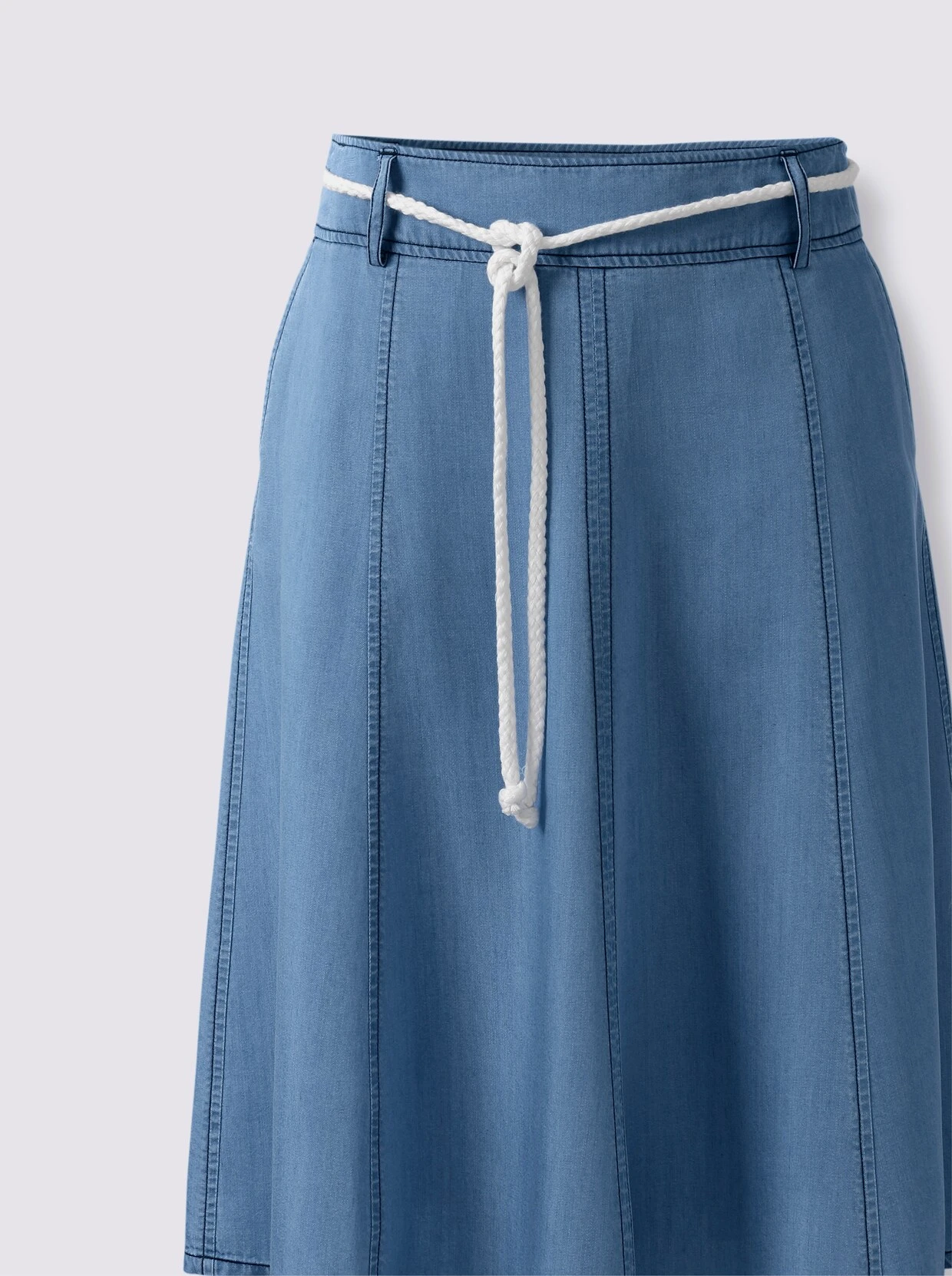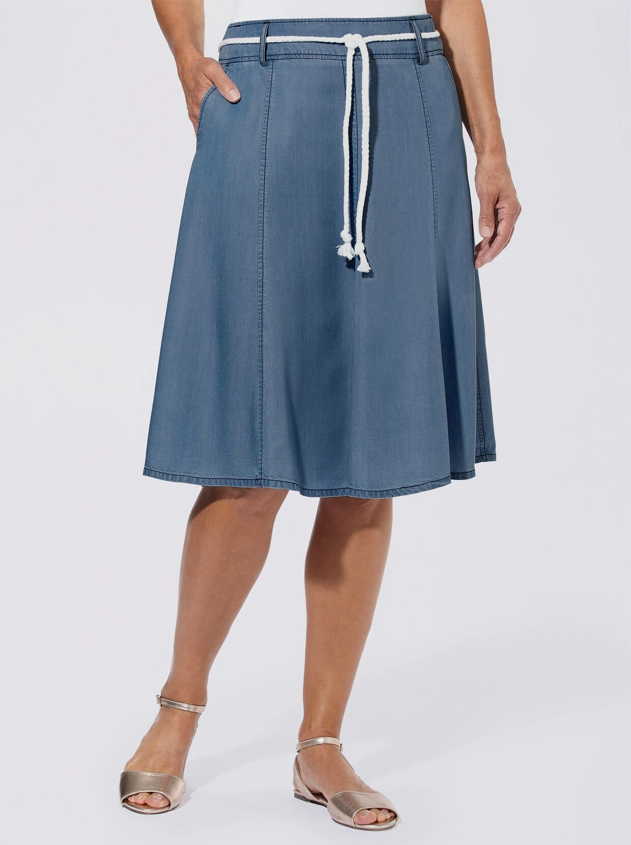 Alle lieben Lyocell – und diesen Rock! Weil es fast nichts Schöneres gibt als das luftig leichte Tragevergnügen, das er an warmen Sonnentagen zu bieten hat. Schwungvoller Bahnenschnitt mit Gürtelschlaufen sowie Reißverschluss hinten. 2 Taschen vorne. Beim Kauf des Rocks erhalten Sie den passenden, modischen Kordelgürtel dazu.